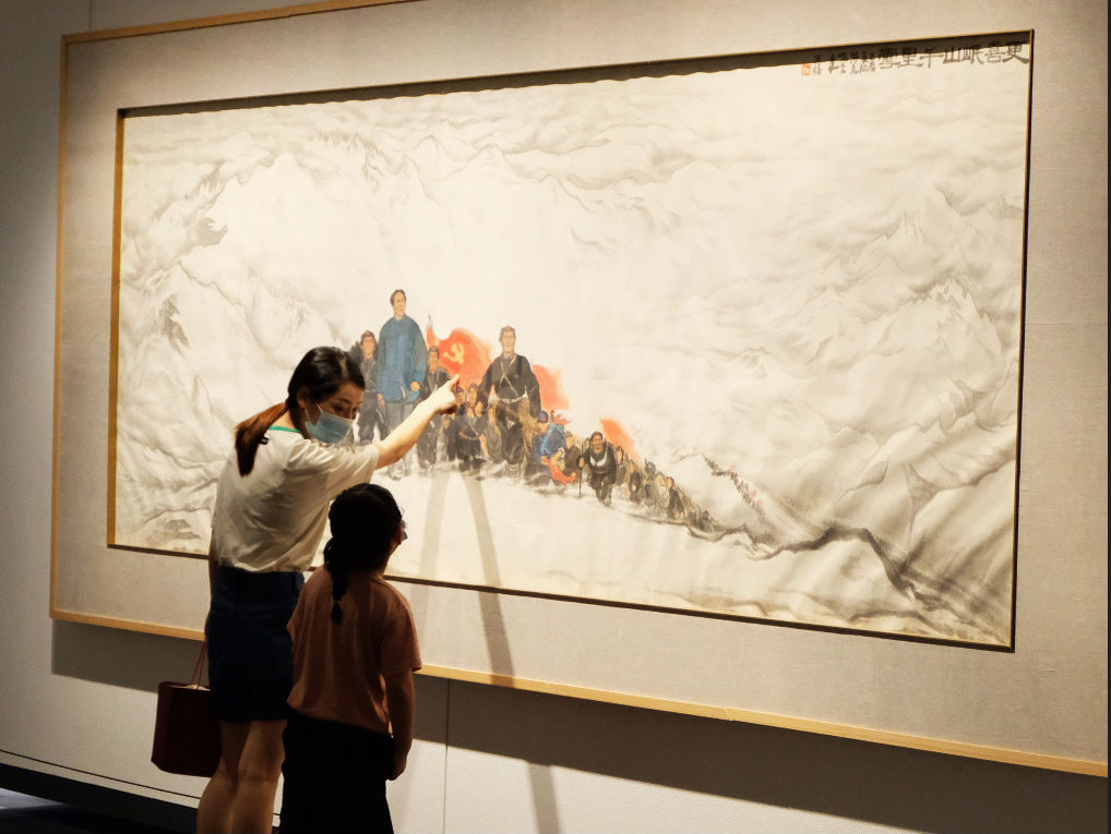 展覽用國畫、油畫、版畫、雕塑等藝術(shù)形式記錄和描繪出一幅幅壯美畫卷,不僅具有極強的觀賞性,更兼?zhèn)鋵W(xué)術(shù)性和知識性。參加活動的黨員同志及業(yè)務(wù)骨干們認真仔細地觀看了作品展示,思想得到洗禮,內(nèi)心受到震撼,對中華民族深厚的文化感到由衷的自豪。